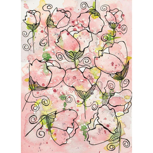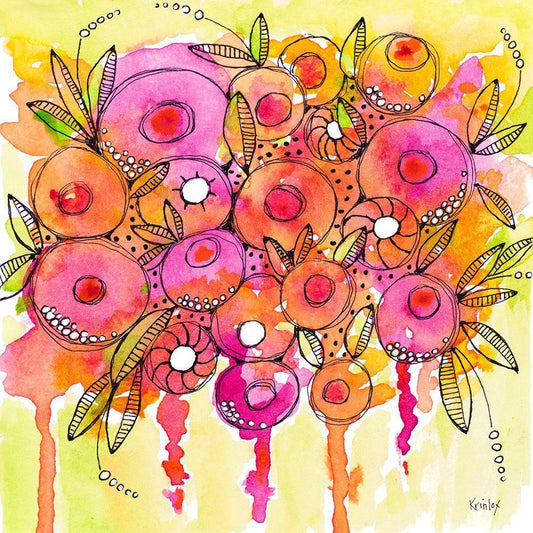 Pretty Pink and Peppy Gold Ornate Wood Framed Art Print with Double Matting by Krinlox