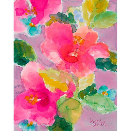Scattered Pink Hibiscus Gold Ornate Wood Framed Art Print with Double Matting by Loreth, Lanie