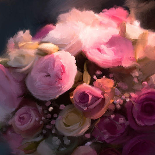 Pink Arrangement Gold Ornate Wood Framed Art Print with Double Matting by Meneely, Dan