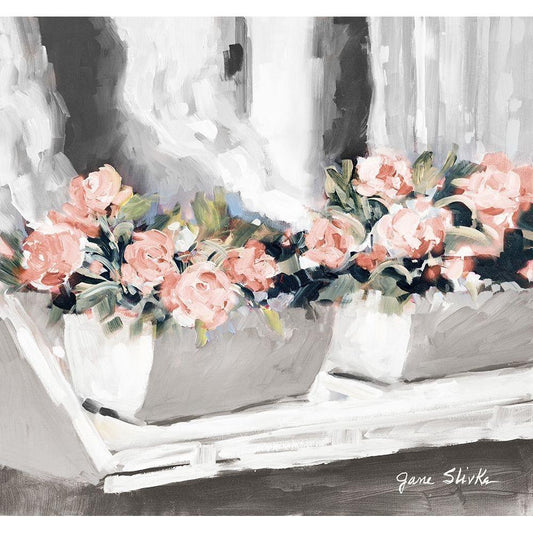Pink Floral Window Gold Ornate Wood Framed Art Print with Double Matting by Slivka, Jane