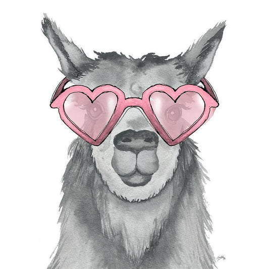 Llama With Pink Shades Gold Ornate Wood Framed Art Print with Double Matting by Medley, Elizabeth