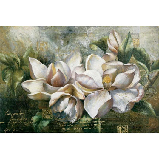 Dawning Magnolias Gold Ornate Wood Framed Art Print with Double Matting by Meng