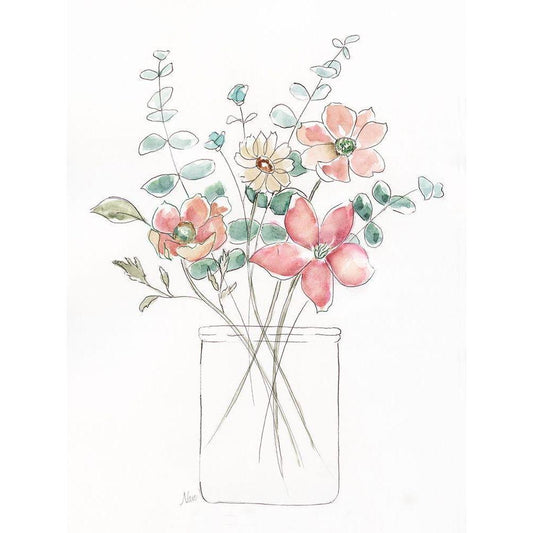 Whimsical Wildflowers I Gold Ornate Wood Framed Art Print with Double Matting by Nan