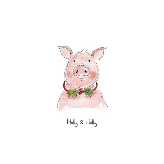 Farm Christmas Pig Gold Ornate Wood Framed Art Print with Double Matting by Robinson, Carol