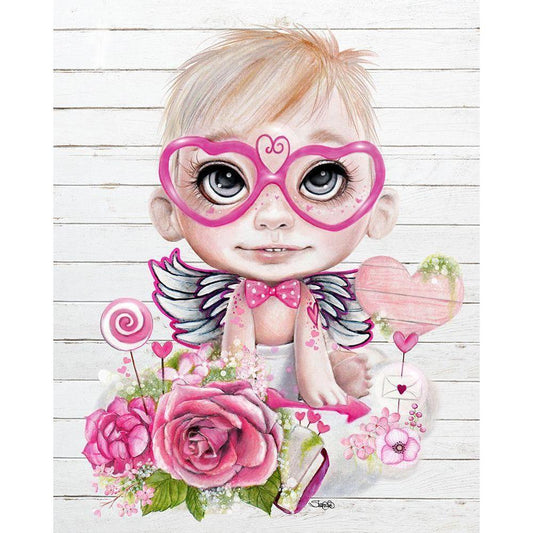 Cupid Valentine Gold Ornate Wood Framed Art Print with Double Matting by Sheena Pike Art