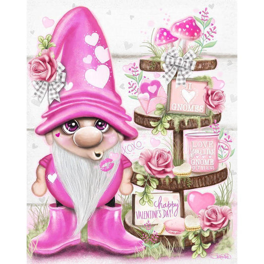 Lil Gnomez Pink Valentine Gold Ornate Wood Framed Art Print with Double Matting by Sheena Pike Art