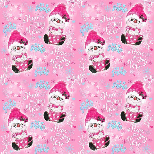 Pink Snowman Pattern Gold Ornate Wood Framed Art Print with Double Matting by Sheena Pike Art