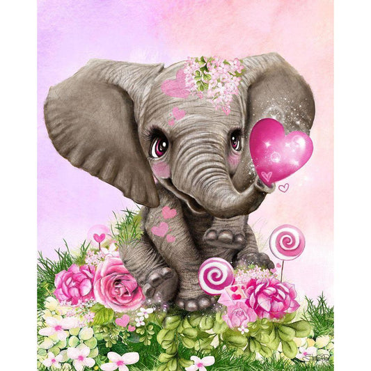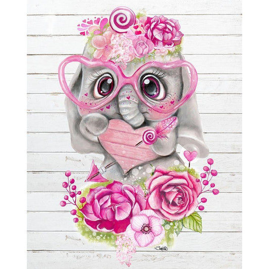 Cute Elephant Valentine Gold Ornate Wood Framed Art Print with Double Matting by Sheena Pike Art