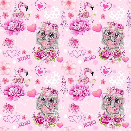 Pink Valentine Elephant And Flamingo Pattern Gold Ornate Wood Framed Art Print with Double Matting by Sheena Pike Art