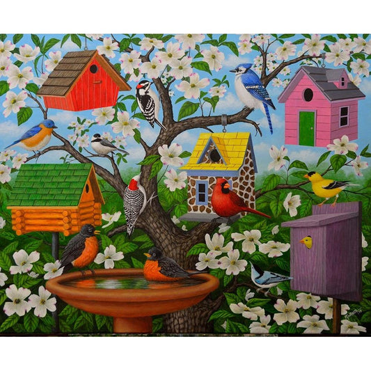 Birds and Birdhouses Gold Ornate Wood Framed Art Print with Double Matting by Wavra, Robert