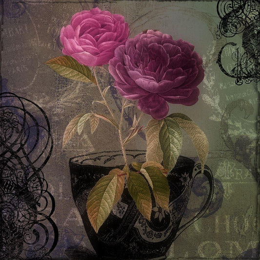 Tea and Roses I Gold Ornate Wood Framed Art Print with Double Matting by Sasha