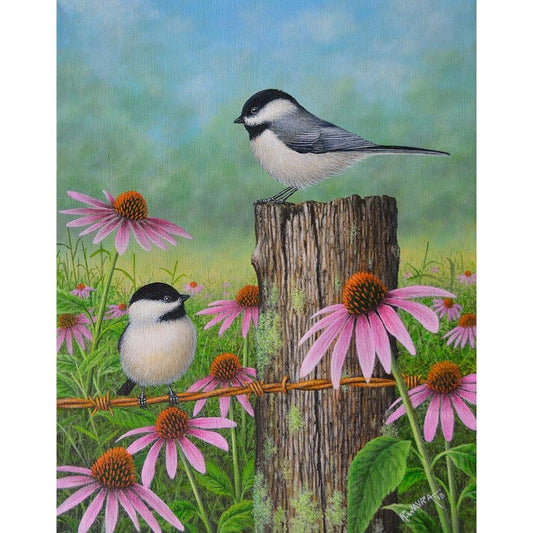 Chickadees and Coneflowers Gold Ornate Wood Framed Art Print with Double Matting by Wavra, Robert