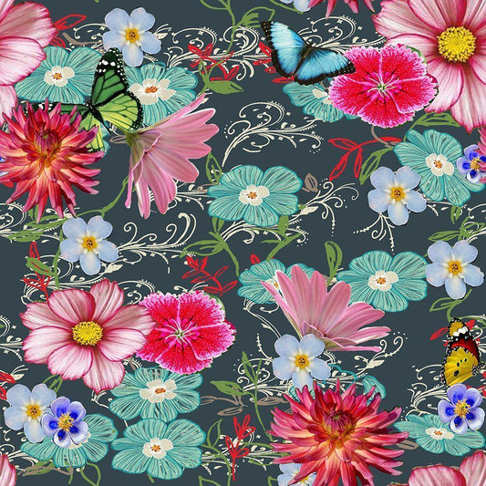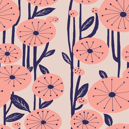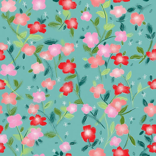 Pink And Blue Flowers Gold Ornate Wood Framed Art Print with Double Matting by HUE and MI and Sangita