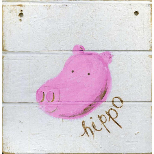 Happy Pink Hippo Gold Ornate Wood Framed Art Print with Double Matting by Butson, Erin