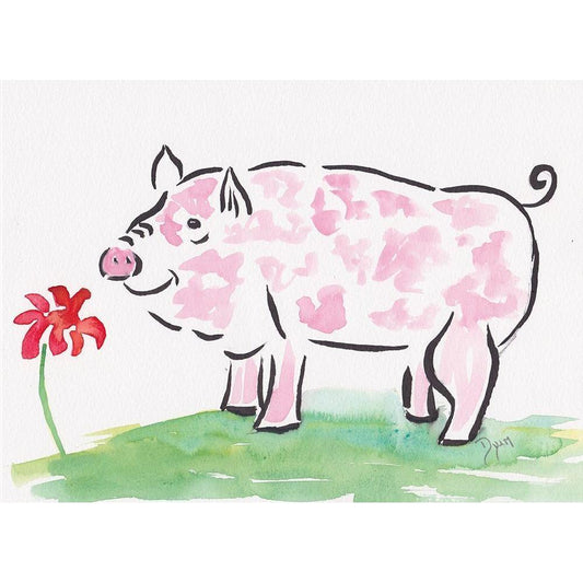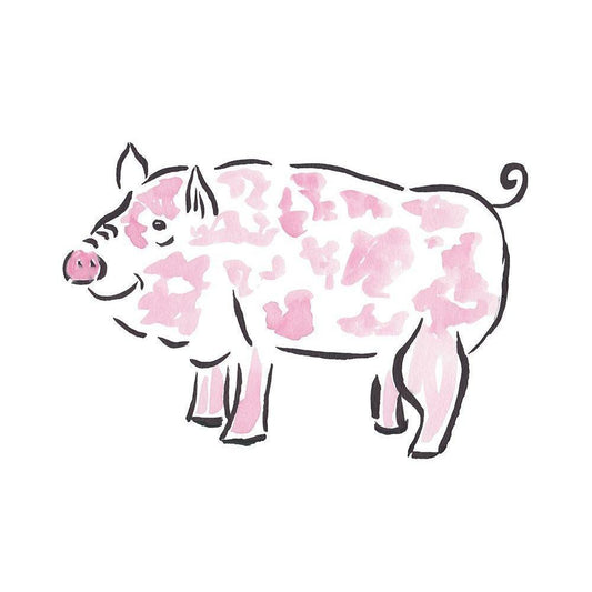 Farmhouse Pig Gold Ornate Wood Framed Art Print with Double Matting by Dyer, Beverly