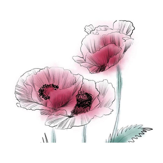 Sketched Poppies 1 Gold Ornate Wood Framed Art Print with Double Matting by Boho Hue Studio