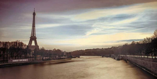 Paris Sunset Black Ornate Wood Framed Art Print with Double Matting by Frank, Assaf