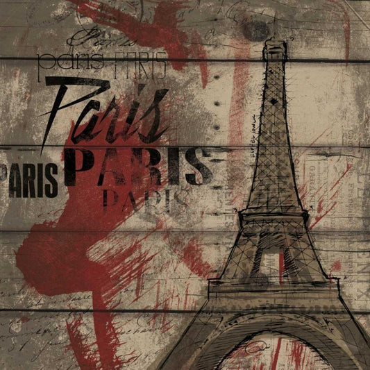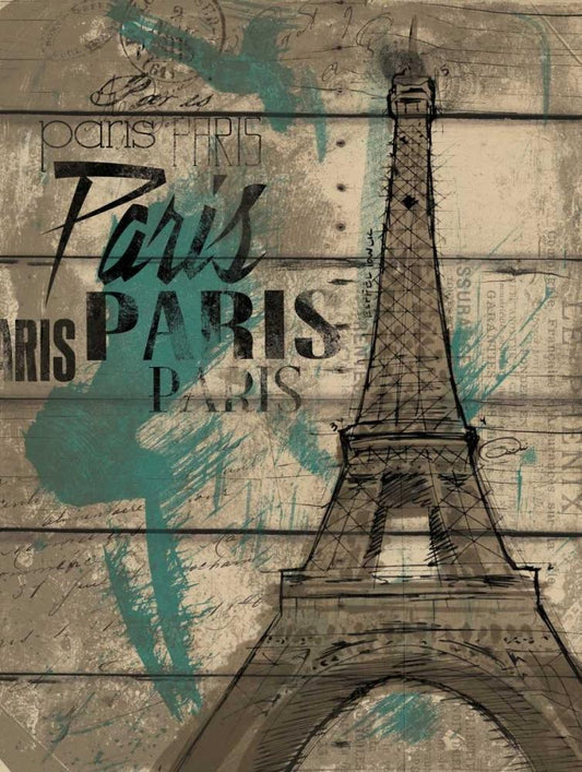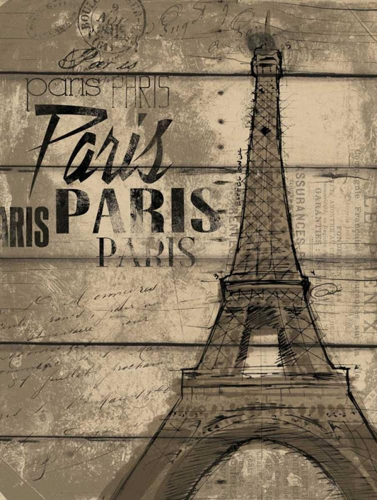 Eiffel Black Ornate Wood Framed Art Print with Double Matting by OnRei