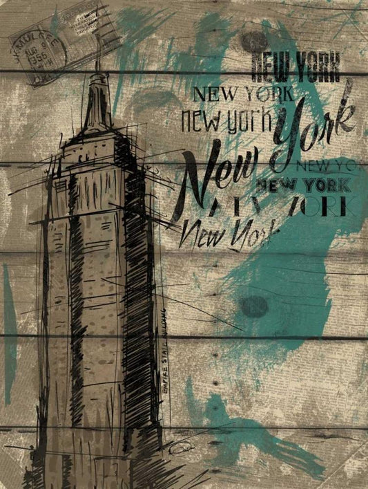 Natural New York Teal Black Ornate Wood Framed Art Print with Double Matting by OnRei