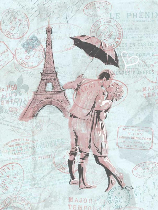 Romantic love Eiffel Black Ornate Wood Framed Art Print with Double Matting by OnRei