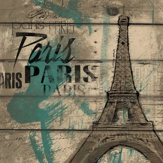 Natural Paris Teal Black Ornate Wood Framed Art Print with Double Matting by OnRei
