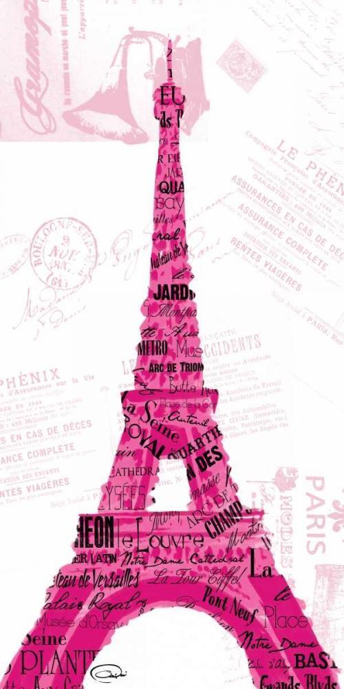 Pink Eiffel Black Ornate Wood Framed Art Print with Double Matting by OnRei