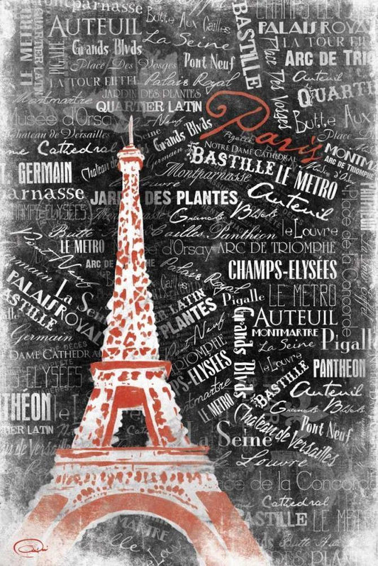 Eiffel NO PARIS Black Ornate Wood Framed Art Print with Double Matting by OnRei