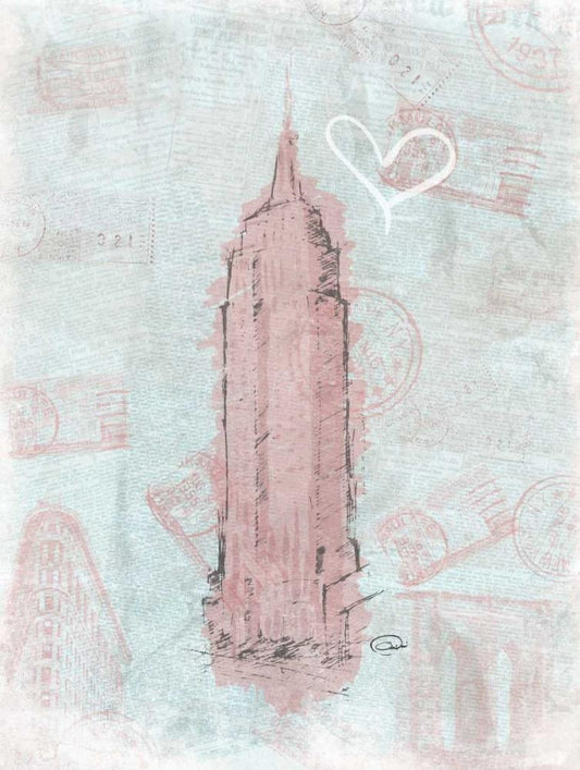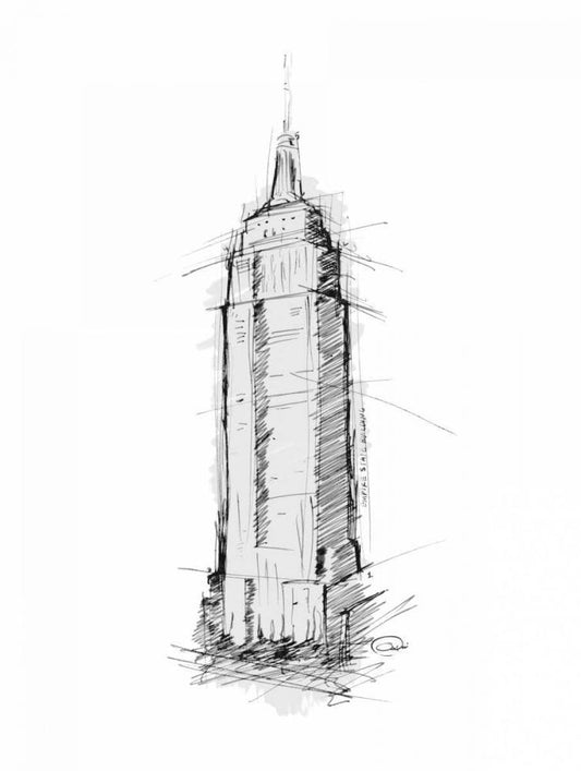 Empire STATE Sketch Black Ornate Wood Framed Art Print with Double Matting by OnRei