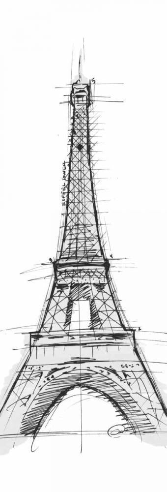 Eiffel Black Ornate Wood Framed Art Print with Double Matting by OnRei