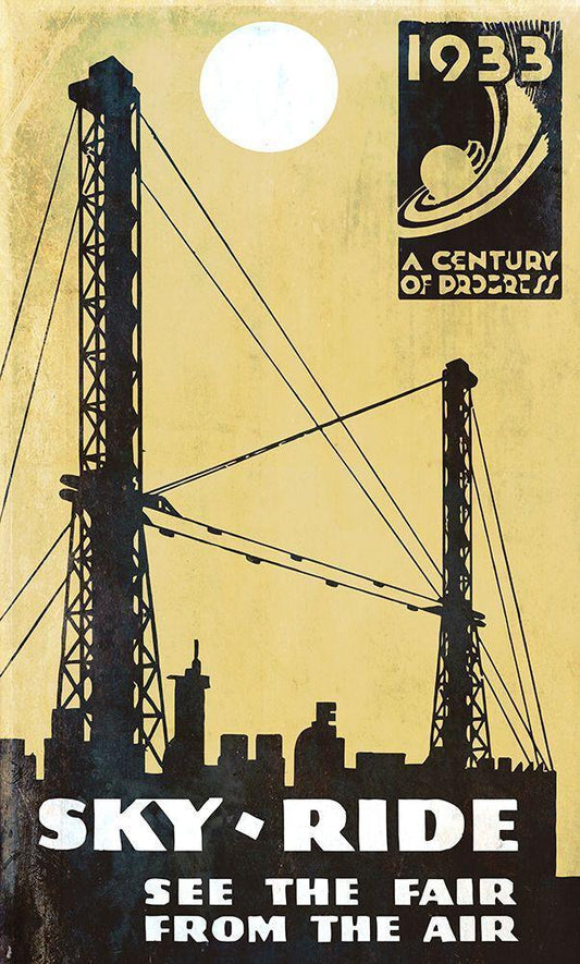 Skyride Yellow Black Ornate Wood Framed Art Print with Double Matting by Vintage Apple Collection