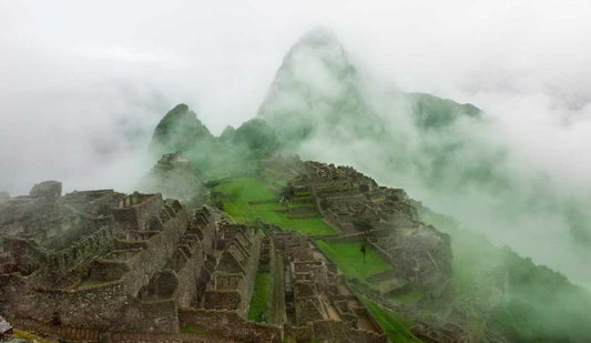 Machu Picchu Mist White Modern Wood Framed Art Print with Double Matting by Bennion, Scott