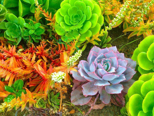 Succulent Garden I White Modern Wood Framed Art Print with Double Matting by Grayscale