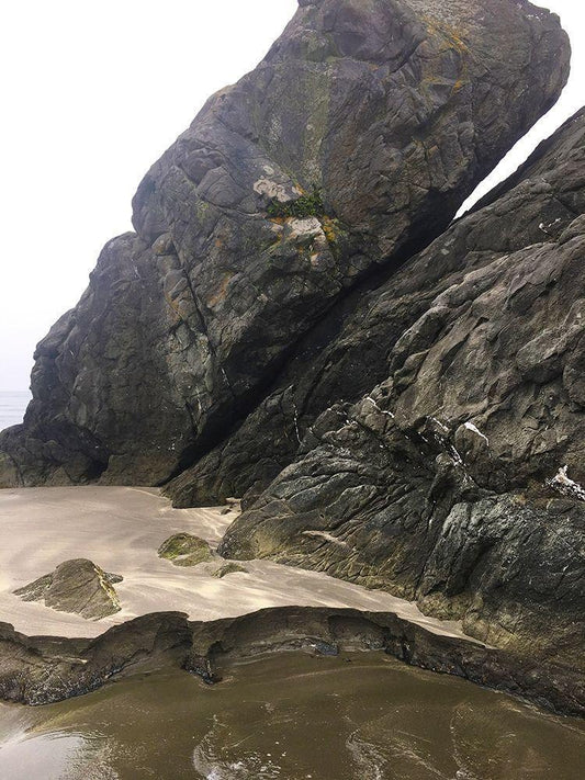Beach Rocks I White Modern Wood Framed Art Print with Double Matting by Grayscale