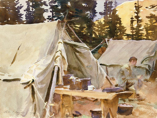 Camp at Lake OHara White Modern Wood Framed Art Print with Double Matting by Sargent, John Singer
