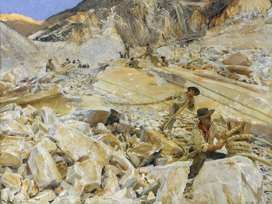 Bringing Down Marble from the Quarries to Carrara White Modern Wood Framed Art Print with Double Matting by Sargent, John Singer