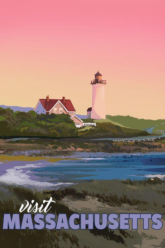 Massachusetts White Modern Wood Framed Art Print with Double Matting by East Coast Licensing