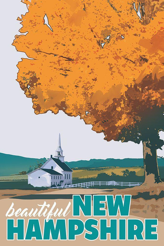 New Hampshire White Modern Wood Framed Art Print with Double Matting by East Coast Licensing