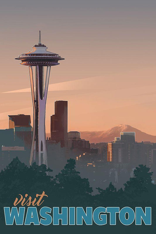 Washington White Modern Wood Framed Art Print with Double Matting by East Coast Licensing