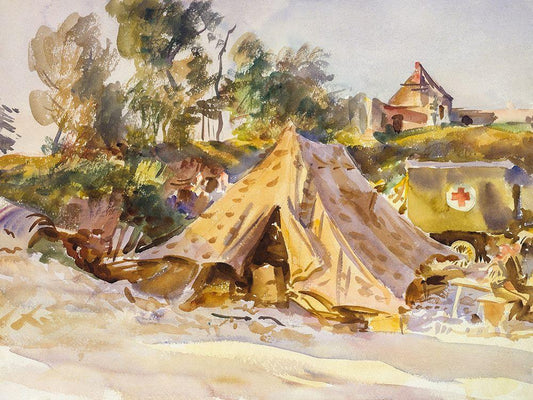 Camp with Ambulance White Modern Wood Framed Art Print with Double Matting by Sargent, John Singer