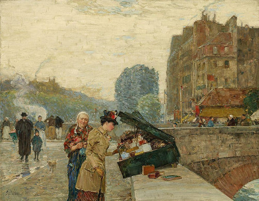 Quai St Michel White Modern Wood Framed Art Print with Double Matting by Hassam, Childe