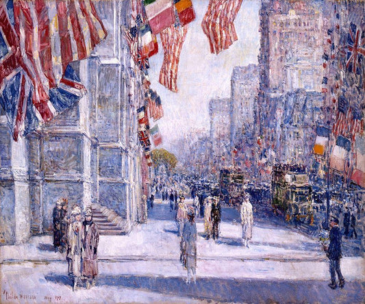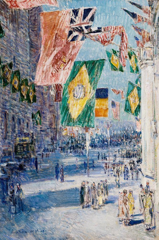 Allies Day White Modern Wood Framed Art Print with Double Matting by Hassam, Childe
