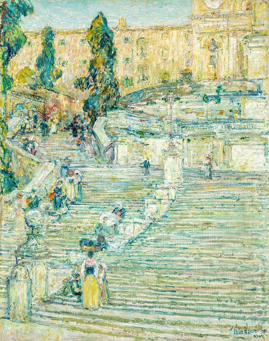 The Spanish Stairs-Rome White Modern Wood Framed Art Print with Double Matting by Hassam, Childe