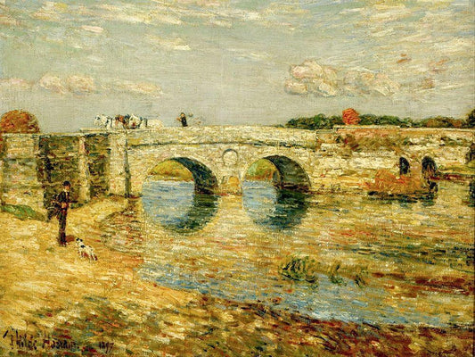Bridge Over the Stour White Modern Wood Framed Art Print with Double Matting by Hassam, Childe