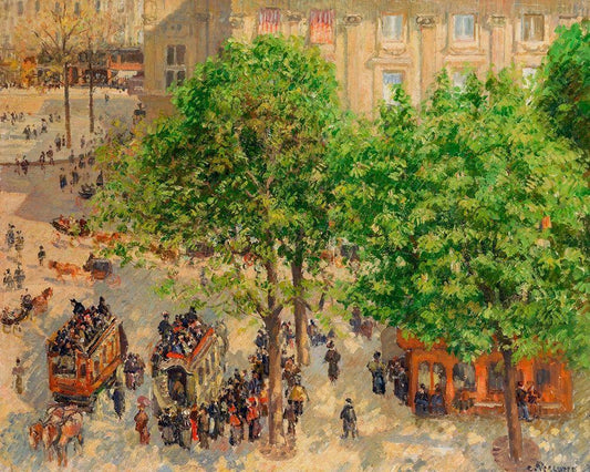 Place du Theatre-Francais, Spring White Modern Wood Framed Art Print with Double Matting by Pissarro, Camille