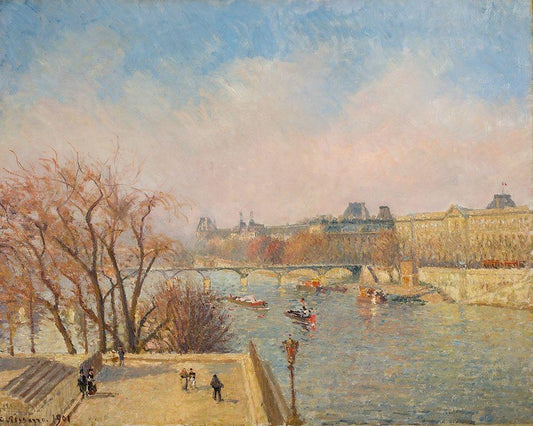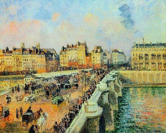 Pont Neuf, Afternoon, Sunlight White Modern Wood Framed Art Print with Double Matting by Pissarro, Camille