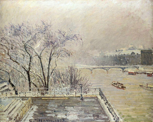 The Louvre under Snow White Modern Wood Framed Art Print with Double Matting by Pissarro, Camille