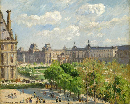 The Louvre, Morning, Sunlight White Modern Wood Framed Art Print with Double Matting by Pissarro, Camille