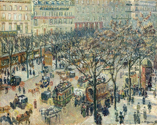 Boulevard des Italiens, Morning, Sunlight White Modern Wood Framed Art Print with Double Matting by Pissarro, Camille