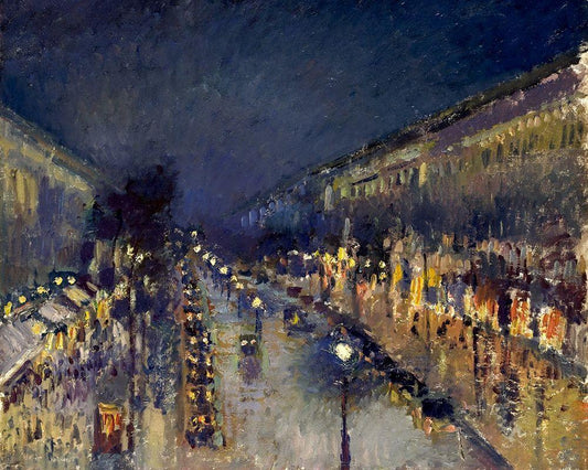 Boulevard Montmartre at night White Modern Wood Framed Art Print with Double Matting by Pissarro, Camille