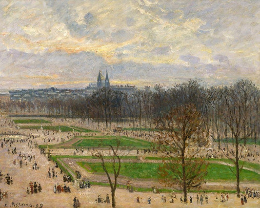 The Garden of the Tuileries on a Winter Afternoon White Modern Wood Framed Art Print with Double Matting by Pissarro, Camille